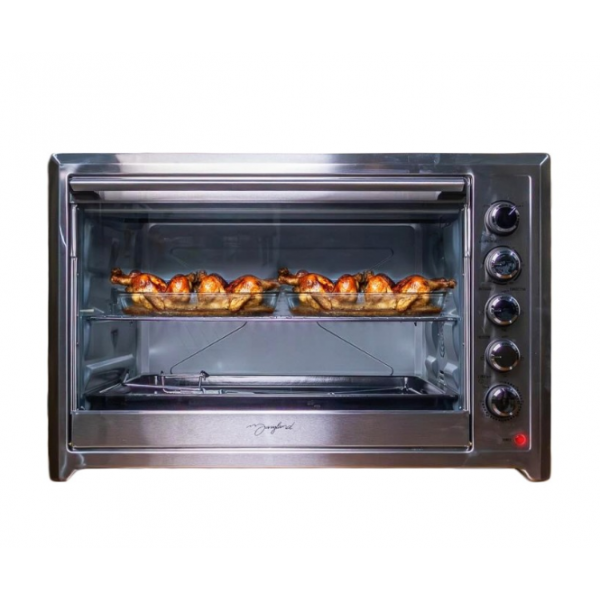 Voltaje: 220V - Potencia: 2800W - Capacidad: 100 Litros - Temperatura: 100 - 250°C - Temporizador: 120 minutos - Tipo de control: Perilla - Accesorios: Bandeja de alimentos - Rejilla de alambre - Asa de la bandeja - Asa del asador - Ventilador de convección y lámpara interior - Carcasa de acero inoxidable - Ancho: 78.00 cm - Alto: 55.00 cm - Profundidad: 54.00 cm - Peso: 17.050 Kg