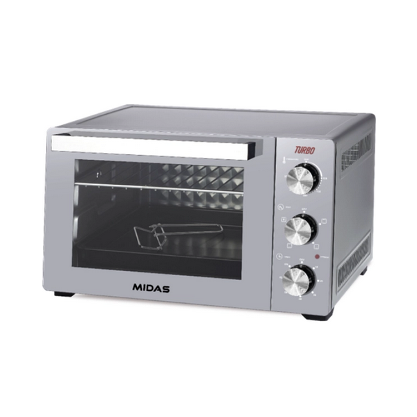 Color: Gris - Capacity?45Lts Reales. - Con función de Convección ? Cocción uniforme. - Voltaje: 220V~ 50Hz. - Potencia: 2000W. - Control de Temperatura: De 100? to 300?. - Timer: De 60 minutos con alarma de campana. - Con Luz Interior - Manija de apertura repelente de calor. - Accesorios: Bandeja de Piso, Parilla de acero inoxidable, Asa de manejo. - Sin fijaciones aparentes (remaches, tornillos, clips, etc.). - Pintura Anti-Adherente - Dimensiones del produto 560 x 460 x 340mm