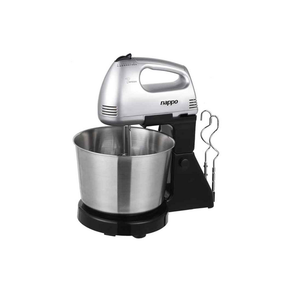 Batidora de mano con bowl metálico de 2L. - 7 velocidades + Pulso. - Con eyector para uso manual sin el soporte. - Potencia: 150W.