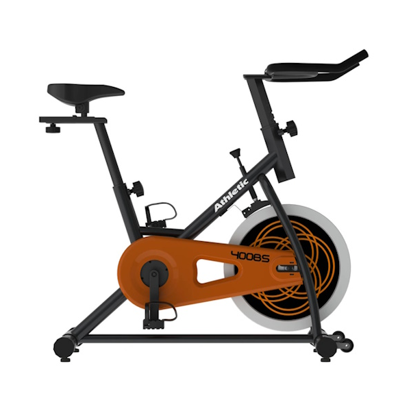 Peso máximo sugerido: 125 Kg. - Disco de inercia: 13 Kg. - Transmisión: Cadena. - Sist. de tensión: Fricción. - Manubrio y asiento regulables. - Asiento prostático. - Monitor electrónico. - Rueda de traslado. - Freno de emergencias. - Traba de pedales. - Dimensiones: 1140x508x1120mm - Peso producto: 33 Kg.