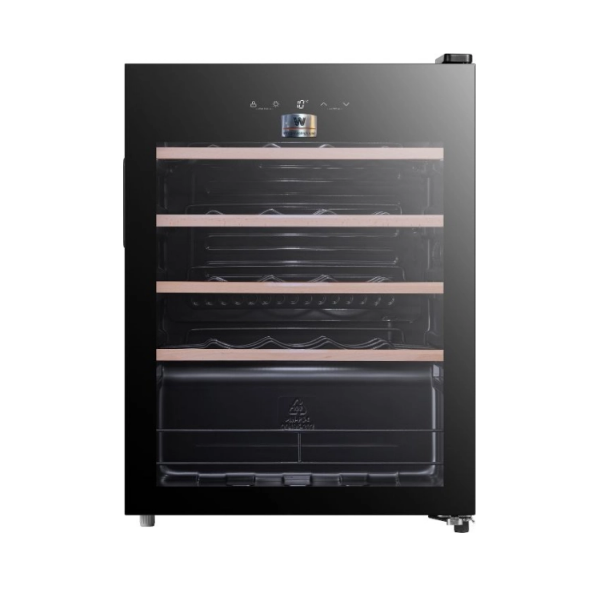 Cava de Vinos para hasta 24 botellas. - Rango de enfriamiento de 5° a 18°C. - Panel digital fronta. - Frío húmedo. - Parrillas removibles y ajustables. - Puerta de Vidrio. - Patas regulables. - 47 cm ancho - 63 cm alto - 44 cm profundidad