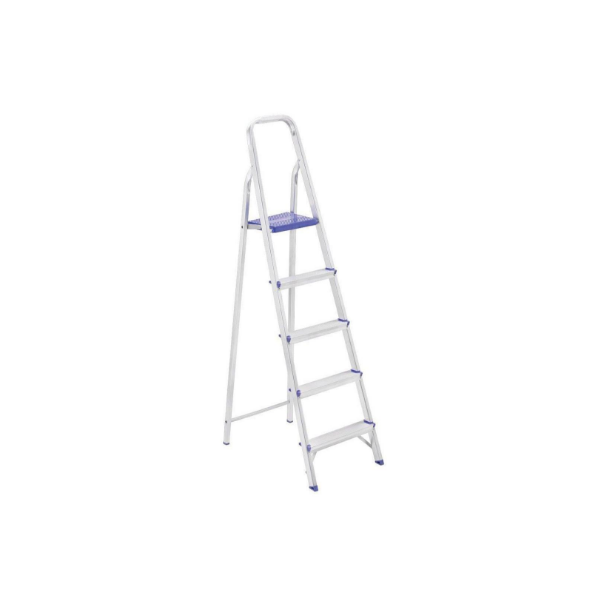 Escalones antideslizante. - Traba automática en el escalón superior. - Barandilla alta y segura. - Aluminio de aleacion especial. - Super resistente 120kg. - 5 peldaños. - Medida 100cm.