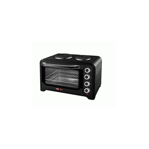 - Horno eléctrico con grill y luz interna. - Capacidad horno 60 litros. - Timer de 0 a 120 minutos. - Temperatura de 100ºC a 250ºC. - Luz piloto. - Incluye bandeja, rejilla metalica, y mango para sujetar la bandeja. - Funciones control: resistencia superior, resistencia inferior o ambas. Convector. - Dos placas eléctricas, de 19 cm y de 16 cm. - Potencia 1600W.