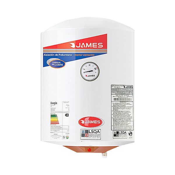 El cobre no presenta problemas de oxidación y corrosión. - Eficiencia energética clase A. - Aislación de poliuretano expandido. - Resistencia blindada. - Luz piloto. - Válvula de seguridad y retención. - Dimensiones: L: Altura 600 mm, Diámetro: 402 mm