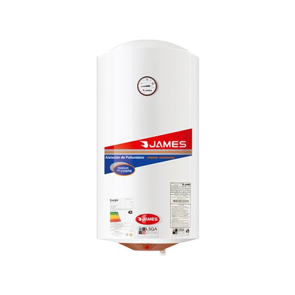 El cobre no presenta problemas de oxidación y corrosión. - Eficiencia energética clase A. - Aislación de poliuretano expandido. - Resistencia blindada. - Luz piloto. - Válvula de seguridad y retención. - Dimensiones: Altura 810 mm, Diámetro: 402 mm.
